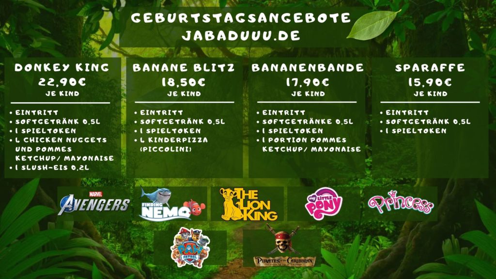 Geburtstagsboxen ab 7 Kindern buchbar! Ein Geburtstagskuchen darf natürlich gerne mitgebracht und bei uns kalt gestellt werden. Das Mitbringen von eigenen Speisen oder Getränken ist jedoch nicht gestattet! Haben Sie noch Fragen, Wünsche oder andere Vorstellungen? Sprechen Sie mit uns, damit die Geburtstagsparty für alle Teilnehmer zu einem unvergesslichen Erlebnis wird. Das Mitbringen von eigener Deko, Pappbechern und Papptellern ist gestattet. Ihr Jabaduuu-Team